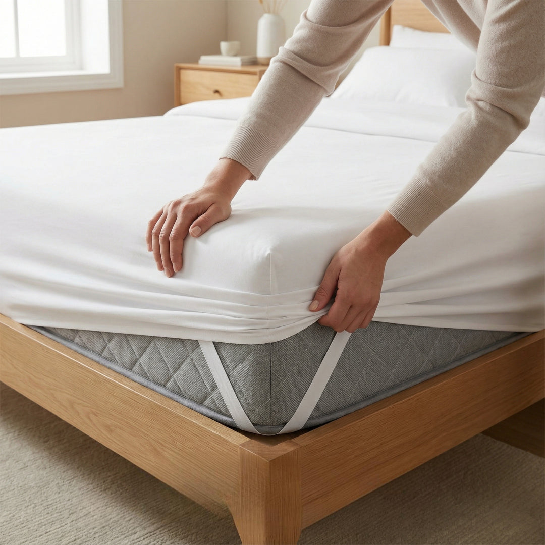 Our secure-strap system keeps your bed looking perfectly made, night after night — without sacrificing comfort, softness, or style.