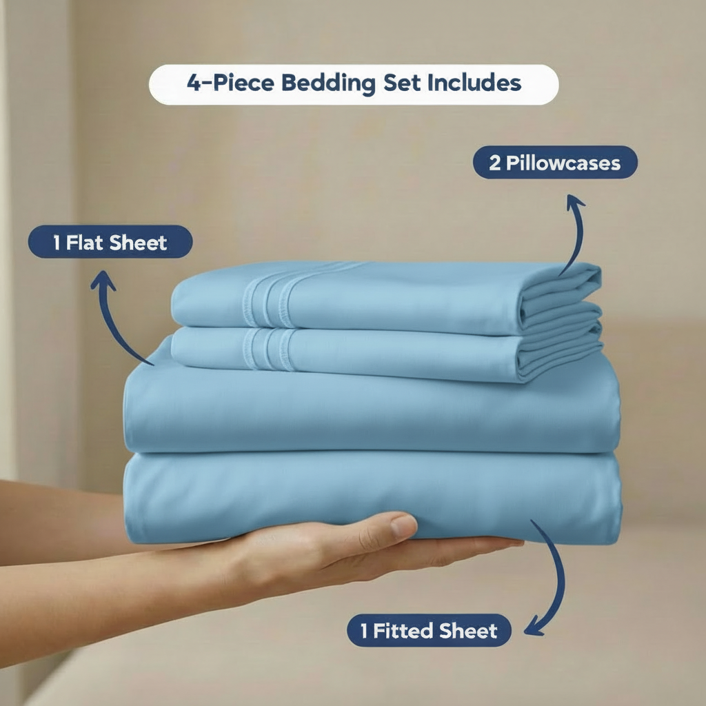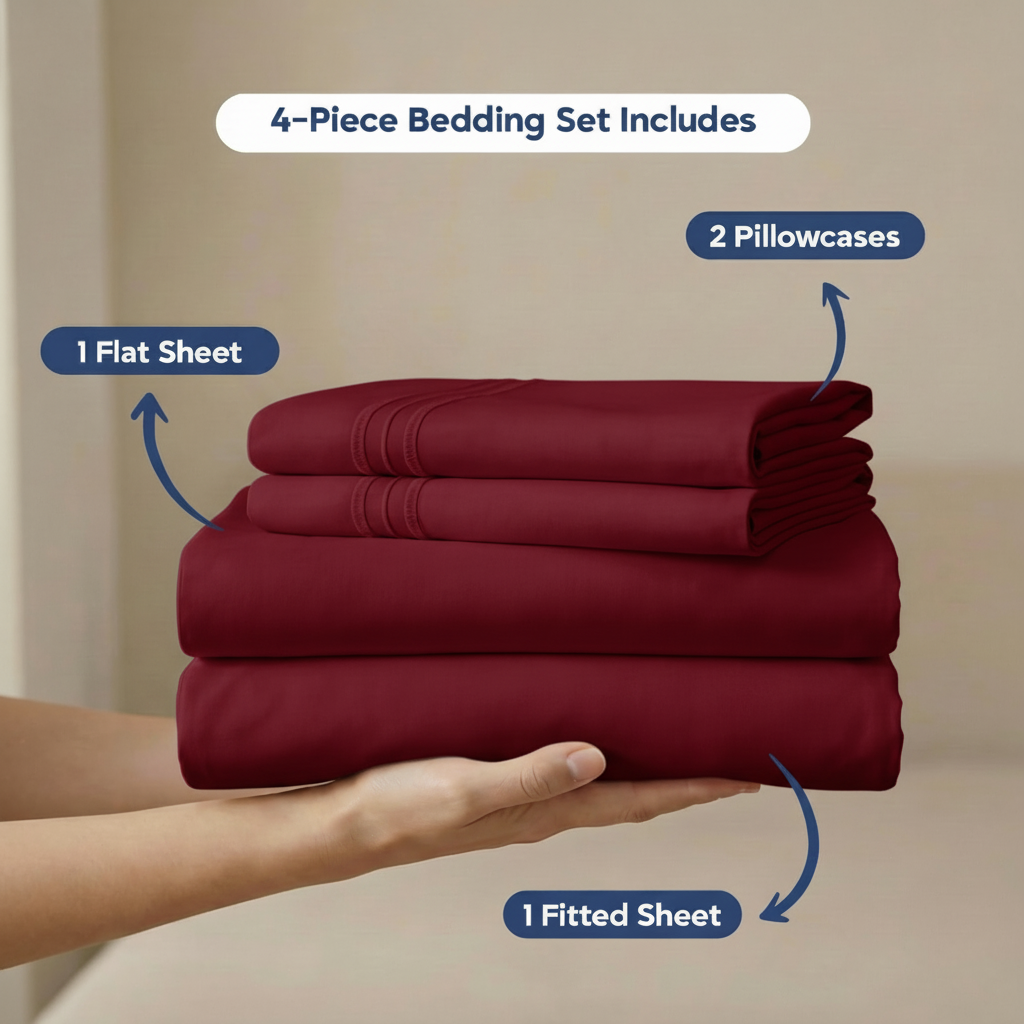 Premium bedding with a patented 4‑side attachment system: No slipping, no bunching, no re‑making the bed.